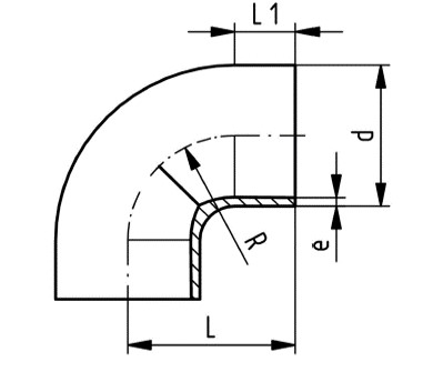 | 產品編號 | 名稱 | d(mm) | PN(bar) | e(mm) | L(mm) | L1(mm) | R(mm) |