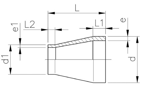 | 產品編號 | 名稱 | d-d1(mm) | PN(bar) | e(mm) | e1(mm) | L(mm) | L1(mm) | L2(mm) |
