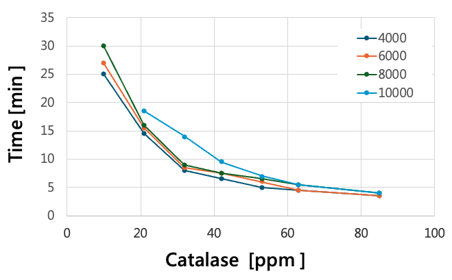 | 除氧酵素 | 投資成本低 無須變更動現有設備 反應10min有效去除90%雙氧水 不產生污泥 不影響COD、氨氮…數值 可處理高濃度雙氧水 | 加藥成本約等同Fenton法 熱穩定性差>45℃下操作,需提高用量 |
