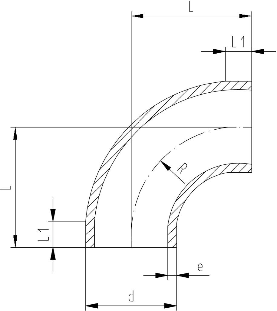 | 產品編號 | 名稱 | d(mm) | PN(bar) | L(mm) | L1(mm) | R(mm) | e(mm) |