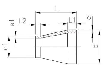 | 產品編號 | 名稱 | d(mm) | d1(mm) | PN(bar) | L(mm) | L1(mm) | L2(mm) | e(mm) | e1(mm) |